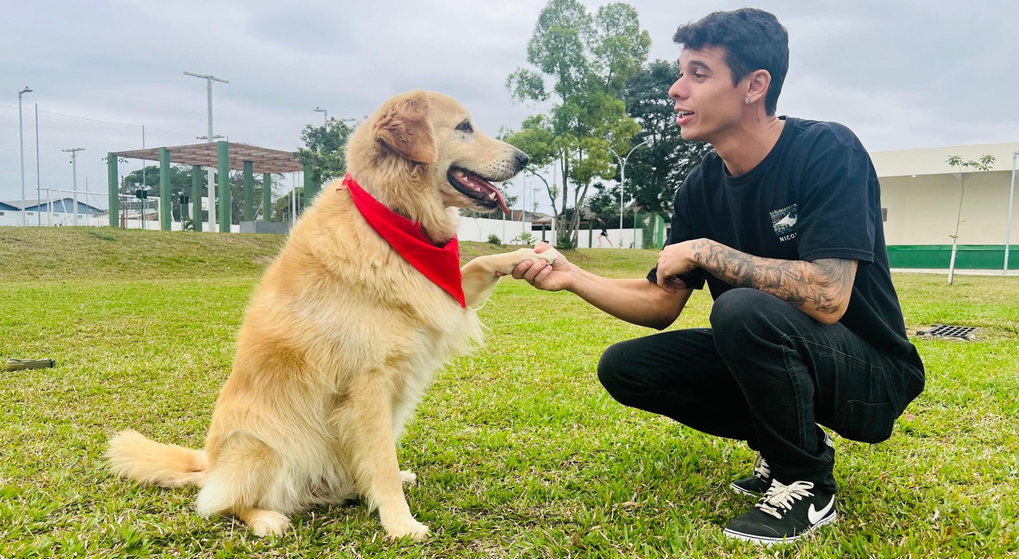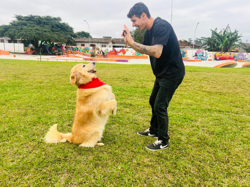 Comandos como senta, fica e vem — sem gritaria, só parceria.
